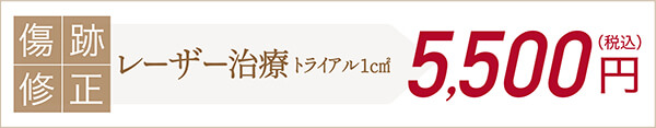 ※傷跡の大きさ(幅)により費用が変わります。正確な費用は、無料診察カウンセリング時に修正治療する傷跡を計測し、ご案内いたします。