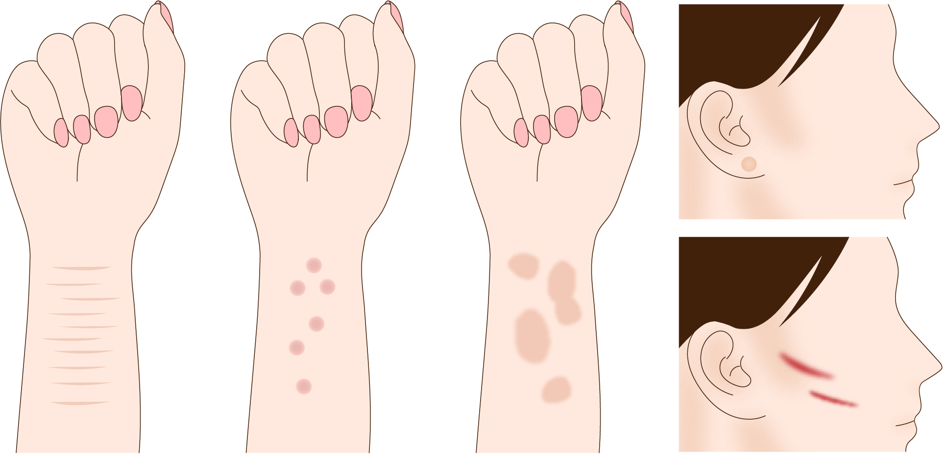 手術痕・美容整形の傷跡・リストカット跡・根性焼き跡・ニキビ跡の凸凹・火傷跡・外傷跡・ピアス裂傷・穴とじ・帝王切開・妊娠線・肉割れ
