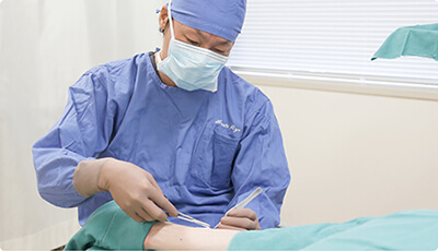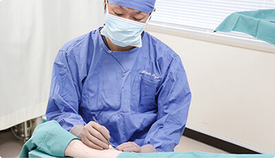 仕上がりの美しさを考え、できる限り無駄な皮膚を切り取らず、傷が目立たなくなるよう切除し、細かく縫い合わせます。