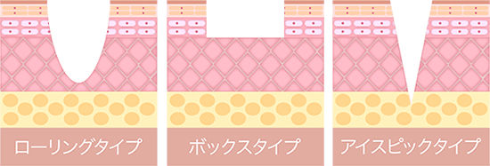 「サブシジョン」は、ローリングタイプの治療に適しています。ボックス・アイスピックタイプはレーザー治療やダーマペン治療が適しています。