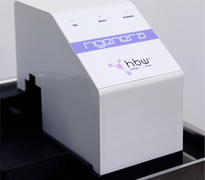 採取した組織をリジェネラ専用の機器で0.05mm程に粉砕し、微細化した組織片を含んだマイクログラフトとなる微細組織懸濁液を生成します。